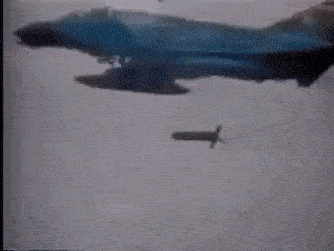 这是战斗机投放集束炸弹的场景。