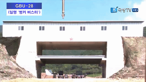 上图为韩国F-15K战机试射GBU-28钻地炸弹的场景。