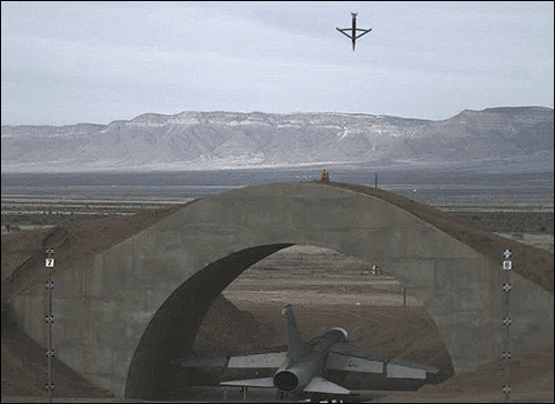 这是伊拉克被摧毁的加固机堡,只有钻地武器才能穿透其混凝土顶层,左侧图片为F-14战机吊舱拍摄画面。