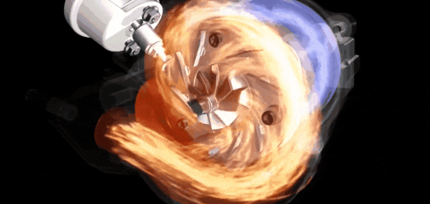 而 VGT 在截面上加了个叶片,这玩意可以根据涡轮的需求调节流速,提高利用效率。